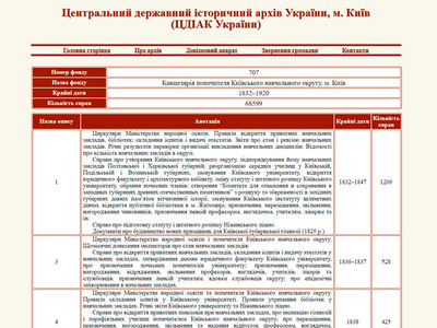 ![]() До уваги користувачів ! Список фондів ЦДІАК України, розміщений у розділі “Довідковий апарат”, доповнено анотаціями на описи фондів адміністративних установ та установ періоду Першої світової війни: 273, 335, 356, 358, 361, 363, 377, 378, 379, 381, 431, 470, 473, 533, 596, 640, 648, 649, 654, 657, 667, 702, 717, 719, 720, 722, 732, 895, 897, 906, 917, 919, 969, 1055, 1059, 1063, 1064, 1085, 1095, 1105, 1157, 1191, 1245, 1257, 1283, 1309, 1342, 1343, 1347, 1349, 1350, 1412, 1415, 1432, 1435, 1592, 1593, 1594, 1596, 1619, 1627, 1630, 1681, 1682, 1692, 1694, 1958, 1959, 1960, 2204, 2238, 2242. 9 січня 2020