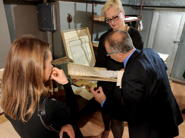 ![]() У ЦДІАК України відбулася зустріч із заступником мера м. Тур (Франція) Жаком Шевченко та директором архіву м. Тур Жан-Люком Порелем, а також віце-президентом Франко-української Асоціації “Бальзак-Ганська” Тетяною Васильєвою. У ході зустрічі обговорювалися питання участі архіву в реалізації проекту “Стежки Бальзака”, засади функціонування архівів України та Франції; також було презентовано невелику експозицію документів до історії україно-французьких зв’язків з фондів ЦДІАК України. 13 грудня 2019