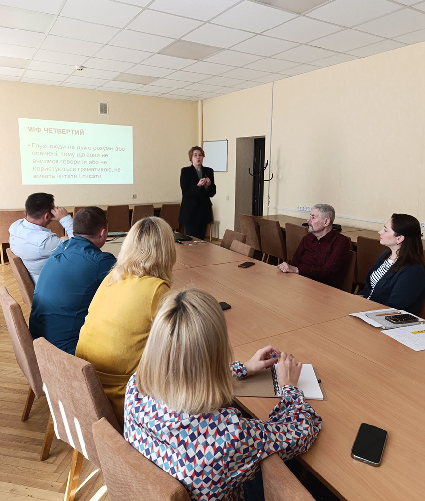 16 вересня 2025 року Казімірова Ірина, заступник директора – головний зберігач фондів ЦДІАК України відвідала лекцію на тему «Безбар’єрність для осіб з порушеннями слуху». Лекція відбулася за участі першої заступниці Голови Українського товариства глухих Тетяни Кривко у межах Плану заходів на 2025 – 2026 роки з реалізації Національної стратегії із створення безбар’єрного простору в Україні на період до 2030 року, затвердженого розпорядженням Кабінету Міністрів України від 25 березня 2025 року № 374. Захід проведено на базі Українського науково-дослідного інституту архівної справи та документознавства.