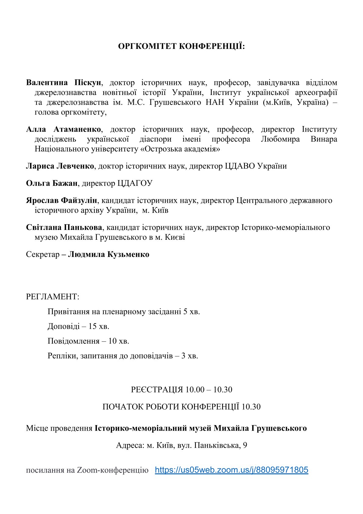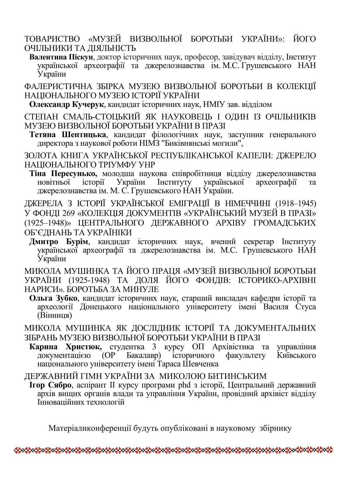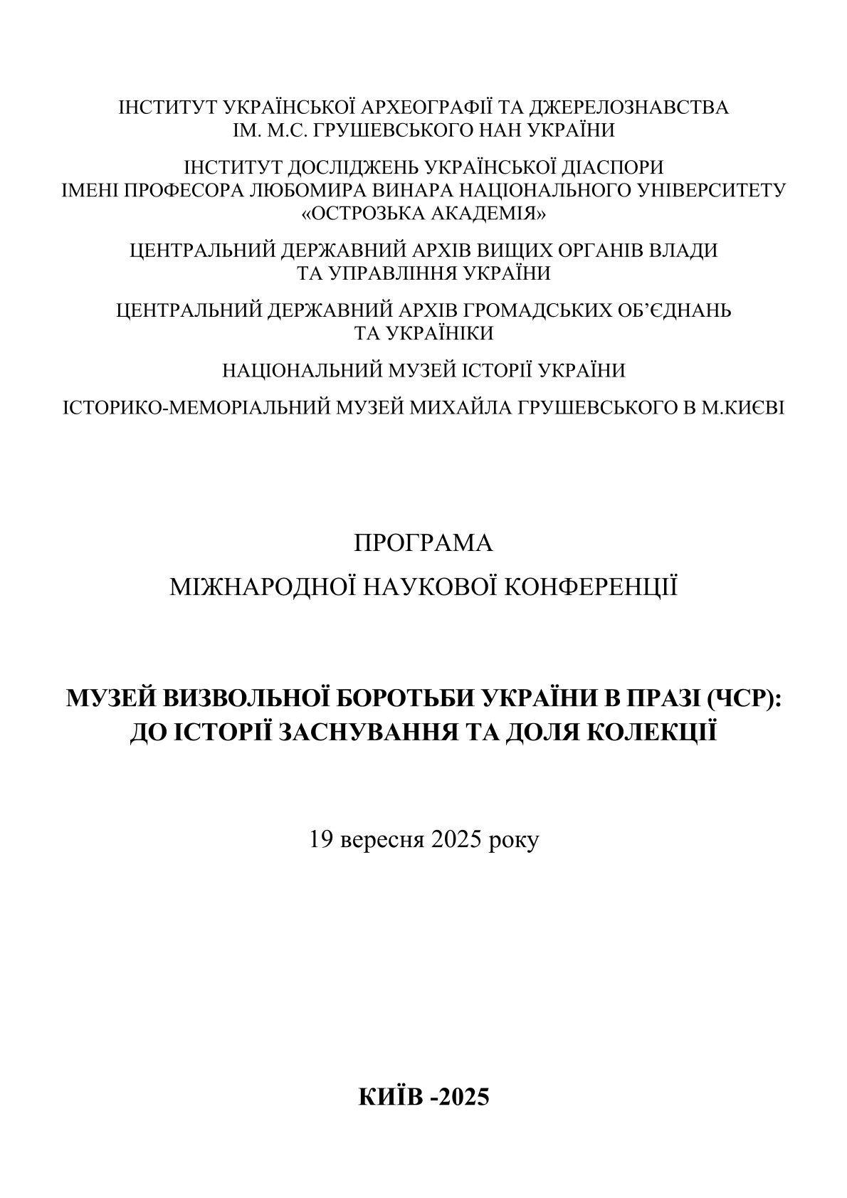 19 вересня 2025 року в Історико-меморіальному музеї Михайла Грушевського (м. Київ, вул. Паньківська, 9) відбудеться Міжнародна наукова конференція «Музей визвольної боротьби України в Празі (ЧСР): до історії заснування та доля колекції».