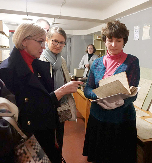 У рамках ознайомчої екскурсії начальник відділу давніх актів ЦДІАК України Ольга Вовк представила студентам документи періоду ХVI-ХVIII століття, а саме: універсали українських гетьманів, грамоти російських царів, актові книги, ІІІ Литовський статут і Генеральний опис Лівобережної України («Рум’янцевський опис»).