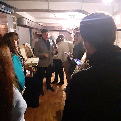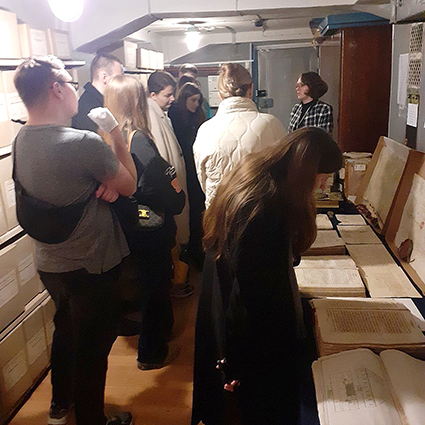 Під час екскурсії в сховищі начальник відділу давніх актів Ольга Вовк представила здобувачам вищої освіти документи періоду XIV-XVIII століття, а саме: стародруки, актові книги Луцького гродського суду і Кам’янецького магістрату Подільського воєводства, богослужбову літературу, грамоти польських королів, універсали українських гетьманів та карту України з географічного атласу, виданого в Нюрнберзі картографічним депо Йоганна Баптиста Гоманна.