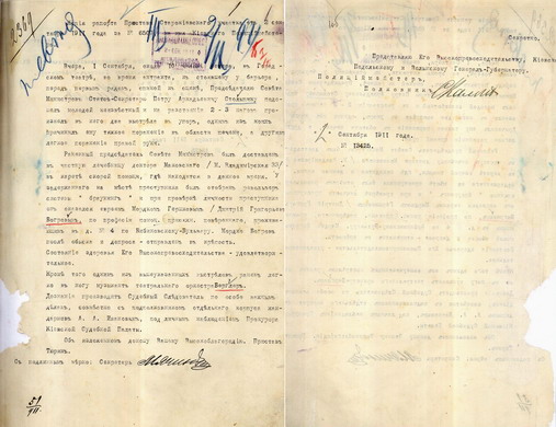 1911 р., вересня 2. – Рапорт пристава Старокиївської дільниці Тюріна про замах на П. А. Столипіна