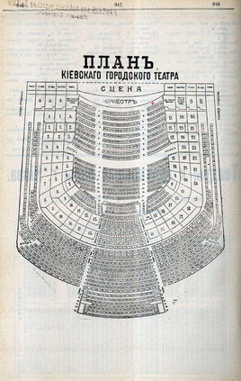 План київського міського театру. Червоним хрестиком позначено місце, де стояв П. А. Столипін у момент пострілу