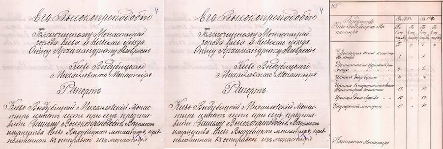 1914 р., березня 14. – Рапорт настоятеля Києво-Видубицького монастиря та відомість про монастирське майно, що підлягає евакуації.