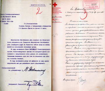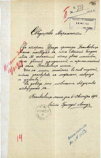 1914 р., серпня 21. – Відношення начальника санітарної частини армій Південно-Західного фронту київському, волинському і подільському генерал-губернаторові про передачу у розпорядження Червоного Хреста приміщень Київського політехнічного інституту для влаштування там шпиталів.