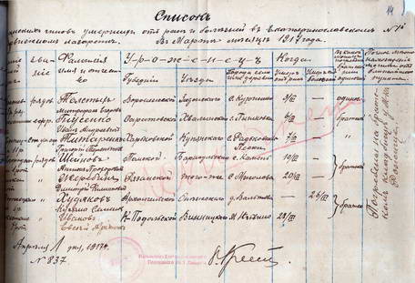 1917 р. – Відомості про померлих від ран військовослужбовців.