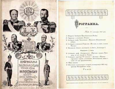 1912 р. – Програма урочистого засідання Київського відділення Імператорського російського військово-історичного товариства з нагоди 100-літнього ювілею війни 1812 р. Друкарський примірник.