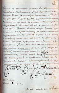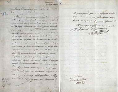1812 р., вересня 14. – Лист міністра народної освіти А. К. Розумовського до директора Царськосельського ліцею В. Ф. Малиновського щодо можливої евакуації ліцею.