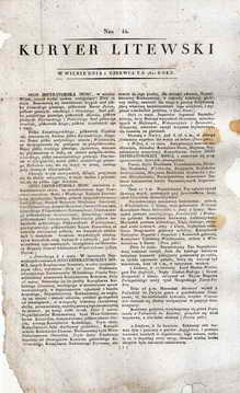 1812 р., червня 1. – Газета “Kurjer Litewski” з повідомленням про призначення Олександром І командирів військових підрозділів. Польська мова