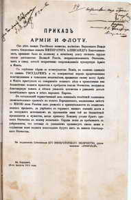 1912 р., серпня 26. – Приказ Миколи ІІ армії та флоту з нагоди святкування 100-річчя Бородинської битви. Копія.