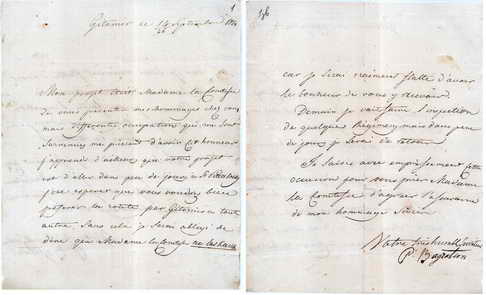 1811 р., вересня 14. – Лист П. І. Багратіона до графині [С.]Потоцької. Французька мова.