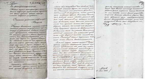 5. Персоналії. Декілька документів, які являють інтерес перш за все з причини свого авторства. Це – лист П. І. Багратіона до графині [С.] Потоцької, написаний у Житомирі під час його перебування на Волині. Лист написано рівно за рік до смерті генерала. Другий документ – лист міністра народної освіти А. К. Розумовського до директора Царськосельського ліцею В. Ф. Малиновського щодо можливої евакуації ліцею. Якщо походження А. К. Розумовського усім добре відоме, то факт народження В. Ф. Малиновського у родині священика зі Слобідської України з незрозумілих причин ретельно обходиться у сучасній російській історіографії. Малиновський – один з багатьох наших земляків, біографія якого ще потребує ретельного вивчення українськими істориками.