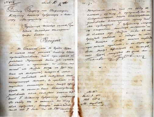 3. Українці у війні. У групі представлено документи щодо формування українського ополчення та козацьких полків, зокрема, оригінали рапортів командувача Українськими кінними полками полковника І. Й. де Вітте.