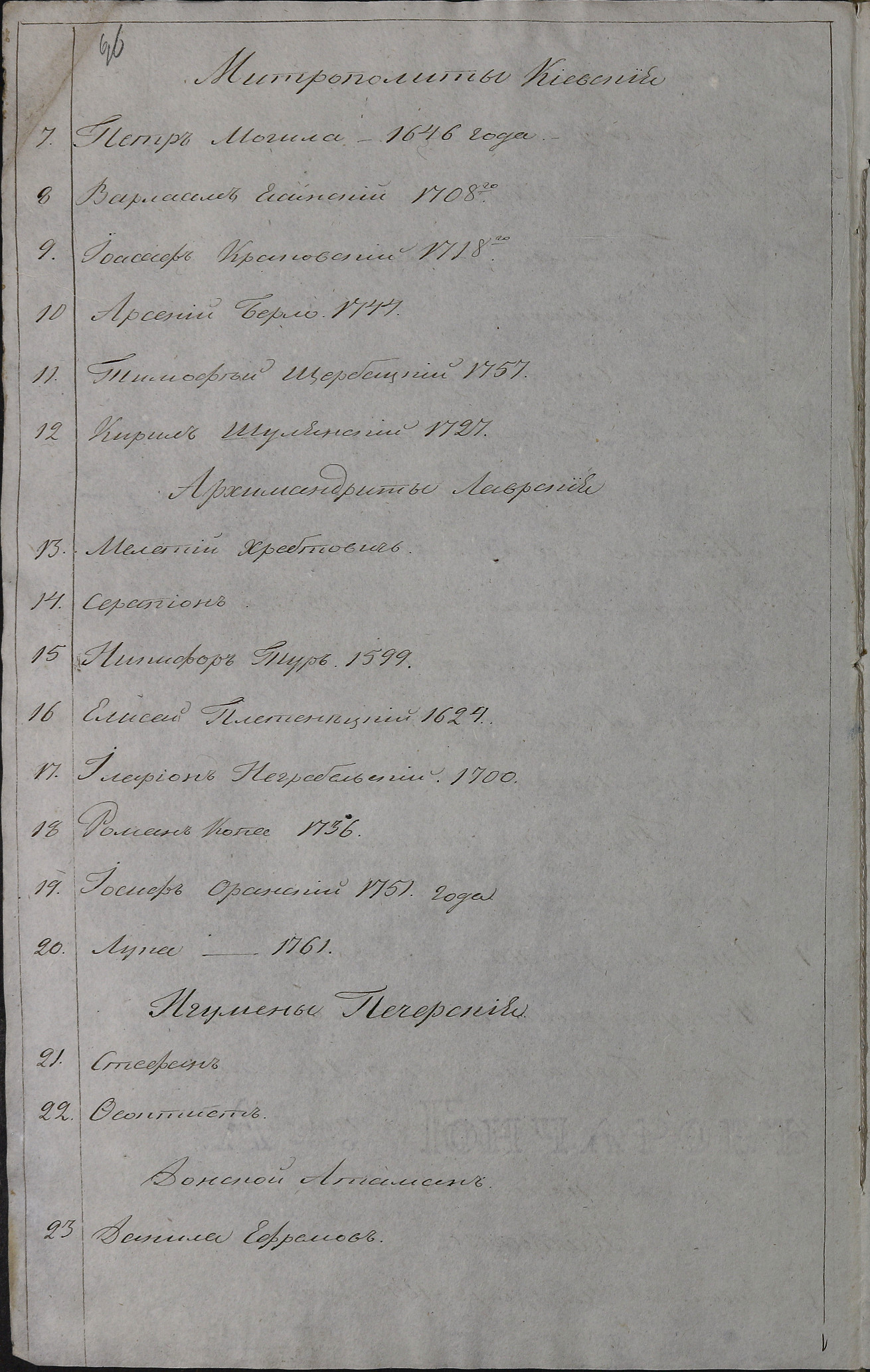 ЦДІАК України, ф. 128, оп. 1заг., спр. 6, арк. 2–3, 5, 7, 11, 12, 18, 20, 23, 26, 27–29