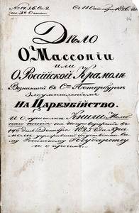 1826 р., жовтня 11. – Титульний аркуш справи “О Массонии и о Российской крамоле…”