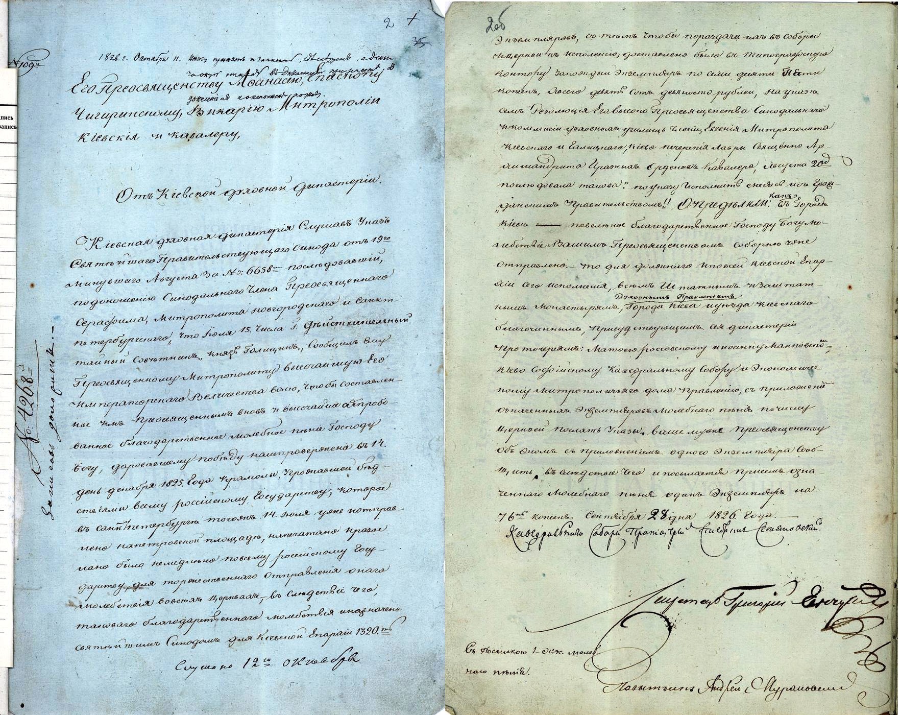 1826 р., вересня 28. – Повідомлення Київської духовної дикастерії Афанасію, єпископу Чигиринському, вікарію Київської митрополії