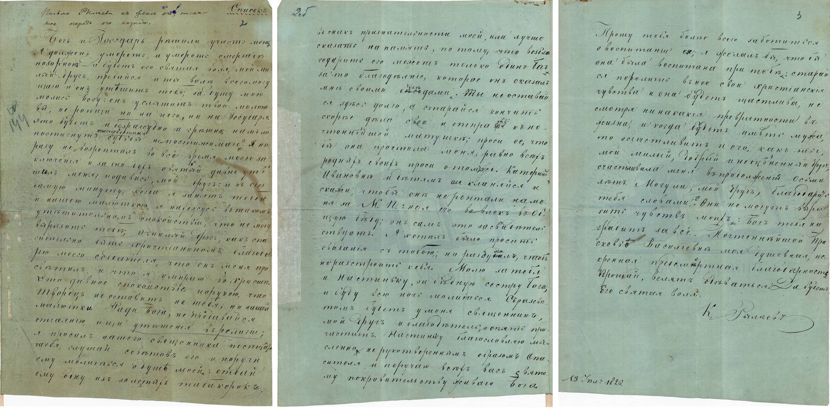 1826 р., липня 13. – Передсмертний лист декабриста К. Рилєєва до дружини. Сучасний список.