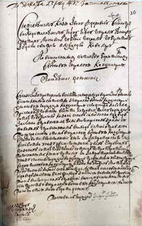 1729 р., січня 21. – Донесення полкового обозного Гадяцького полку Григорія Граб’янки гетьману Данилу Апостолу про проведення слідства в справі викрадення у нього 100 руб.