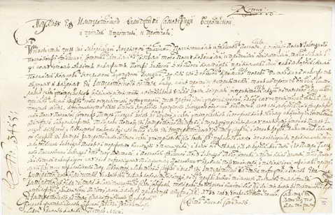 1729 р., грудня 27. Гадяч. – Донесення наказного полковника Івана Пирятинського та полкового судді гадяцького полку Мартина Штишевського, а також старост містечок Рашівка та Комишна, які належать на ранг полковника Гадяцького полку, про самовільне відбирання сербським полковником Михайлом Милорадовичем доходів з цих містечок, що належать до Скарбу військового.