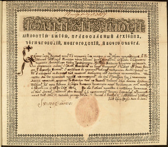 1708 р., березня 13. – Грамота Чернігівського та Новгород-Сіверського архієпископа Івана Максимовича