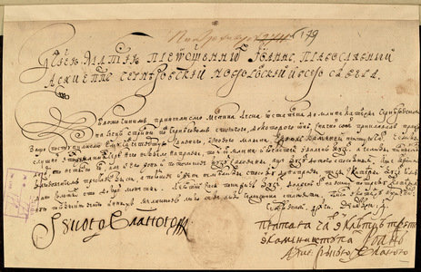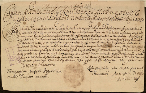 ЦДІАК України, ф. 157, оп. 1, спр. 39, арк. 1. Автограф. Печатка.