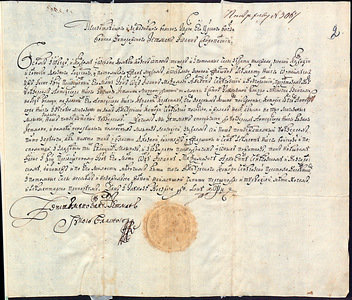 ЦДІАК України, ф. 133, оп. 1, спр. 197, арк. 1–2. Автографи. Печатки.
