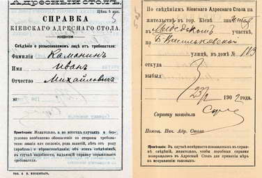 1902 р., лютого 23. – Довідка Київського адресного столу з відомостями про І. М. Каманіна.