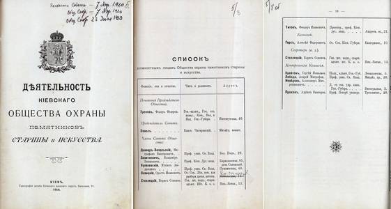 1910 р. – Список посадових осіб Київського товариства охорони пам’яток старовини та мистецтва.