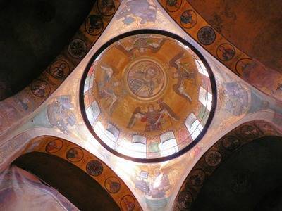 Зображення трьох з чотирьох ангелів навколо мозаїчного зображення Христа-Пантократора належать пензлю М. О. Врубеля.