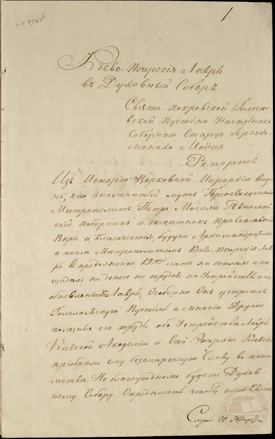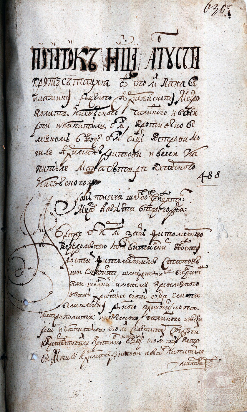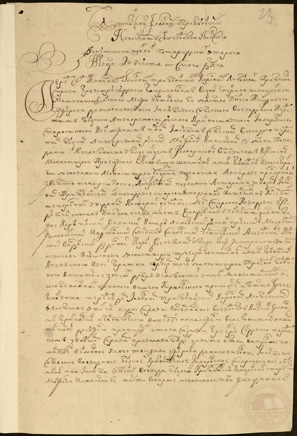 ЦДІАК України, ф. 182, оп. 2, спр. 79, арк. 1. Копія XVIIІ ст.
