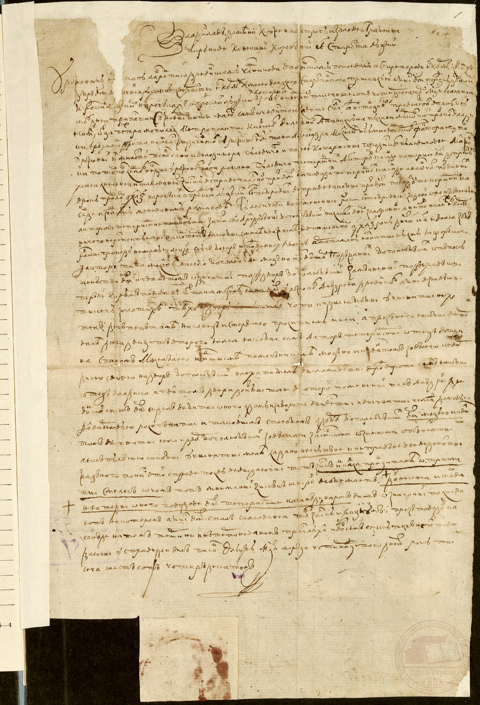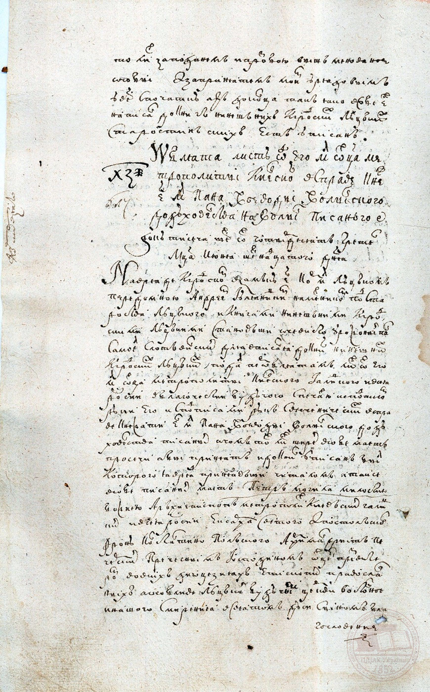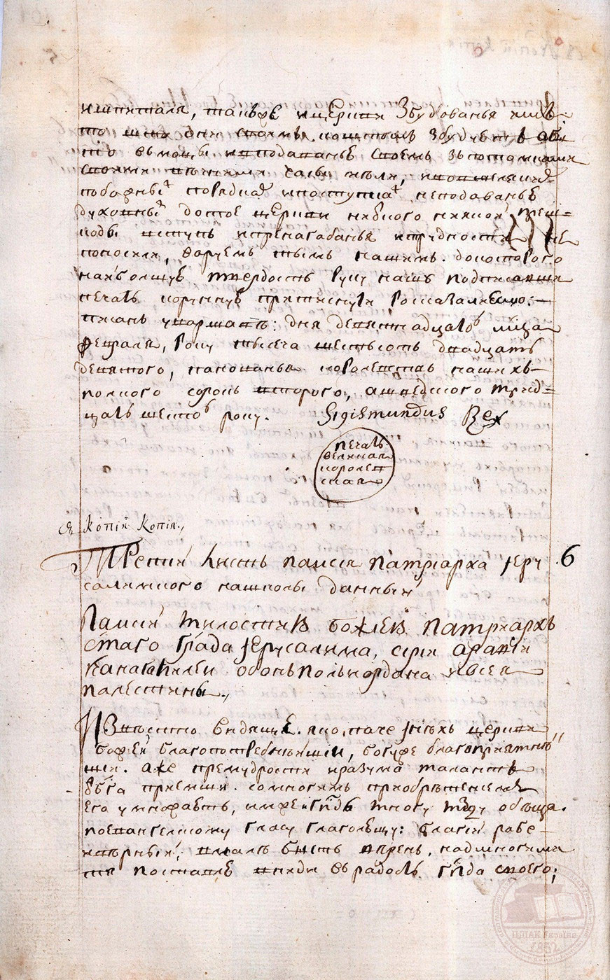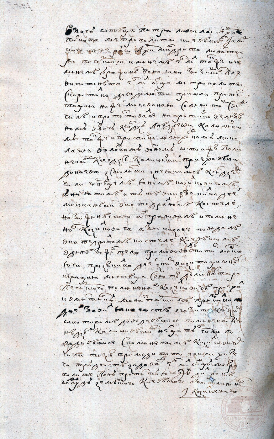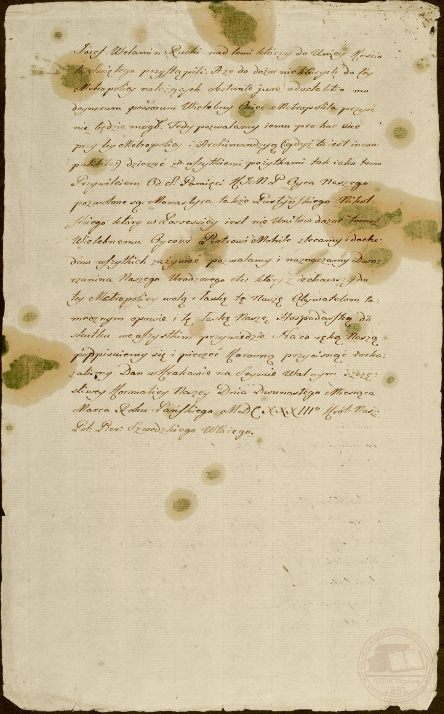 ЦДІАК України, ф. 182, оп. 2, спр. 75, арк. 1 і зв. Копія XVIIІ ст.