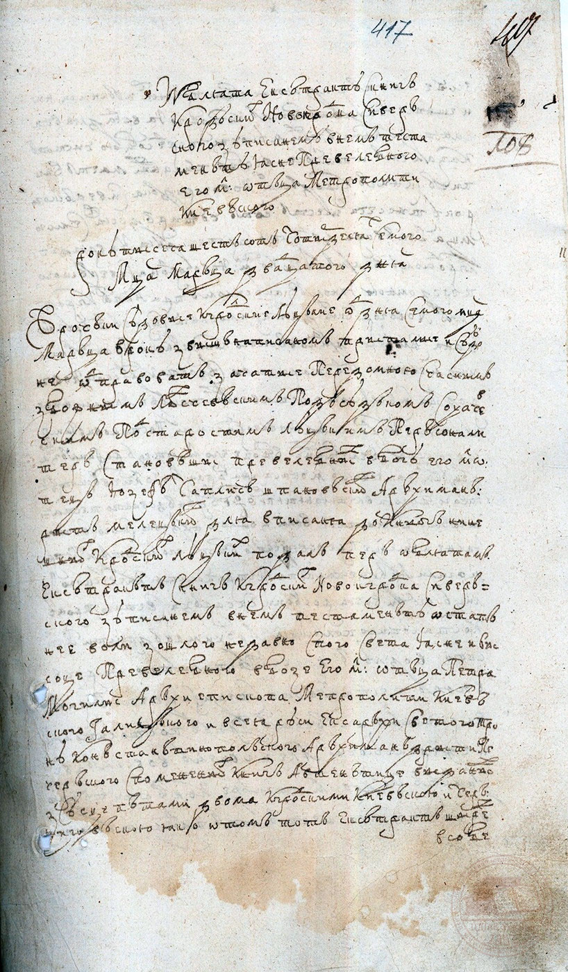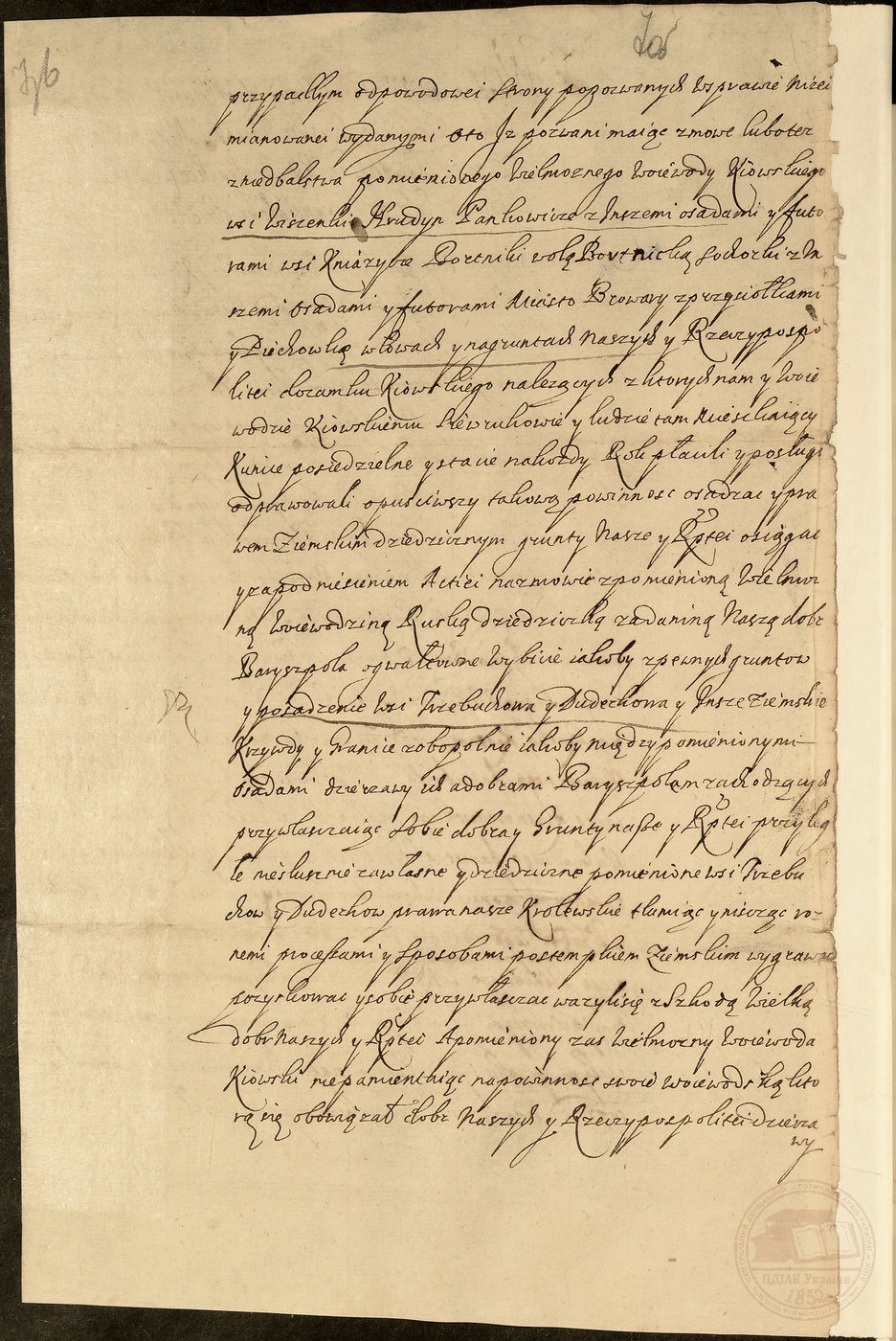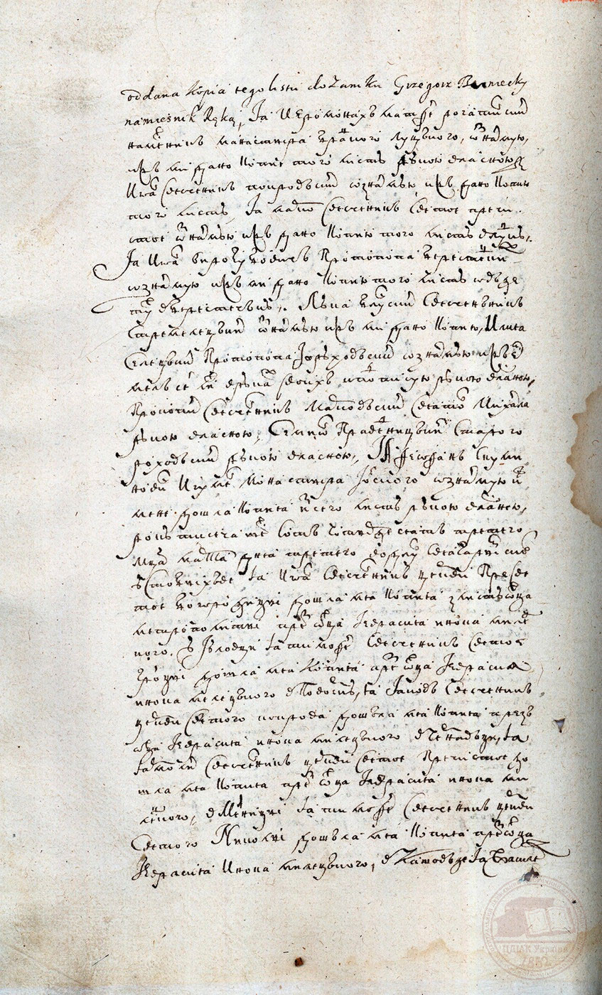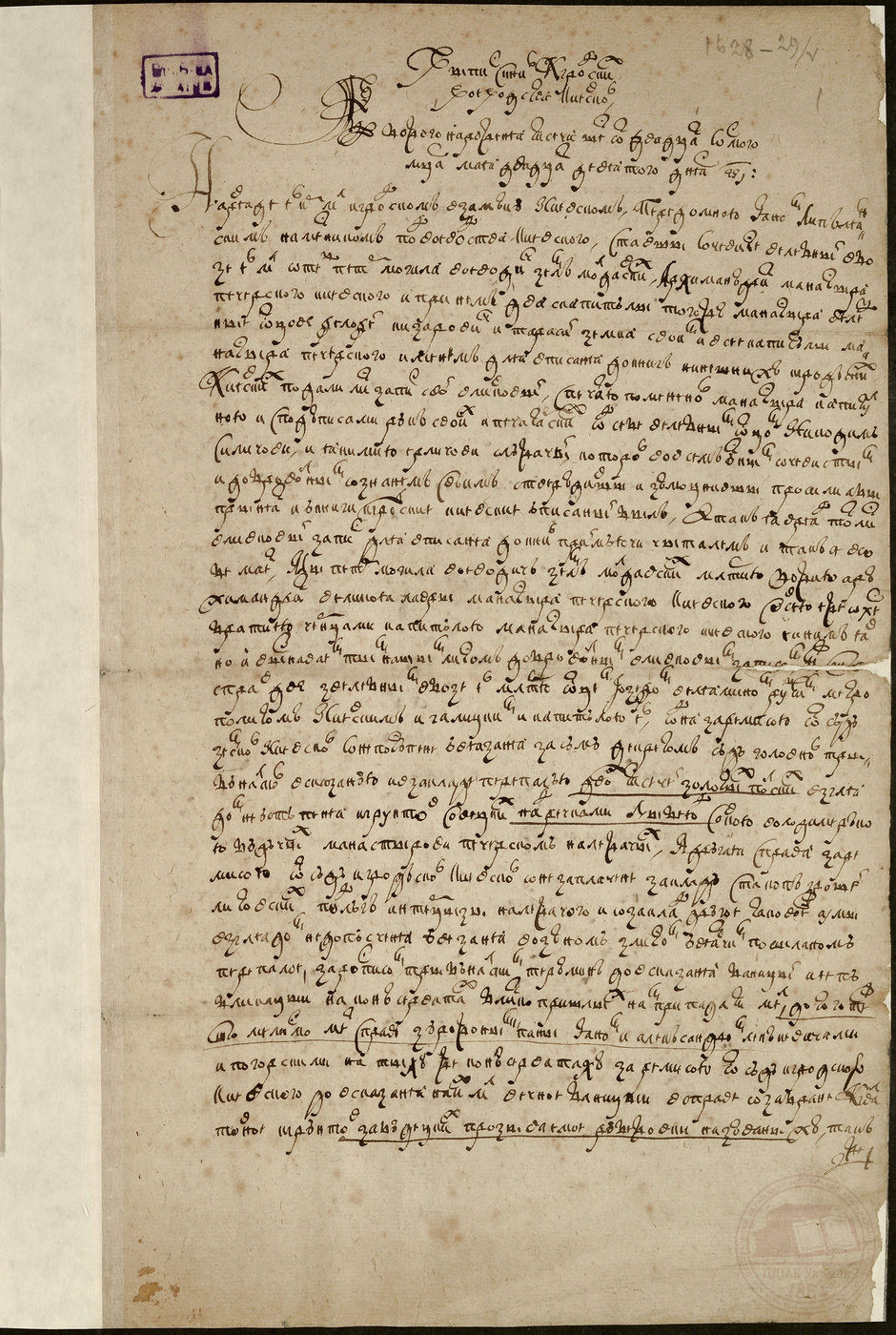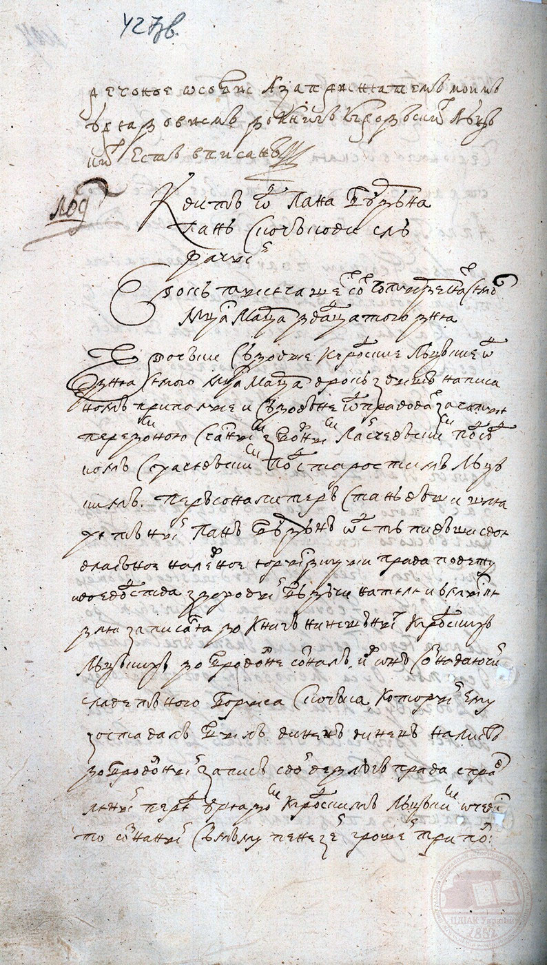 ЦДІАК України, ф. 182, оп. 2, спр. 75, арк. 1 і зв. Копія XVIIІ ст.