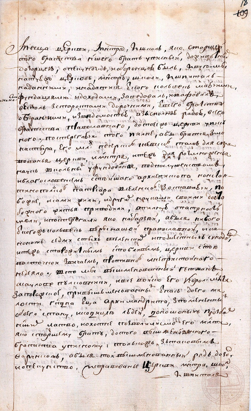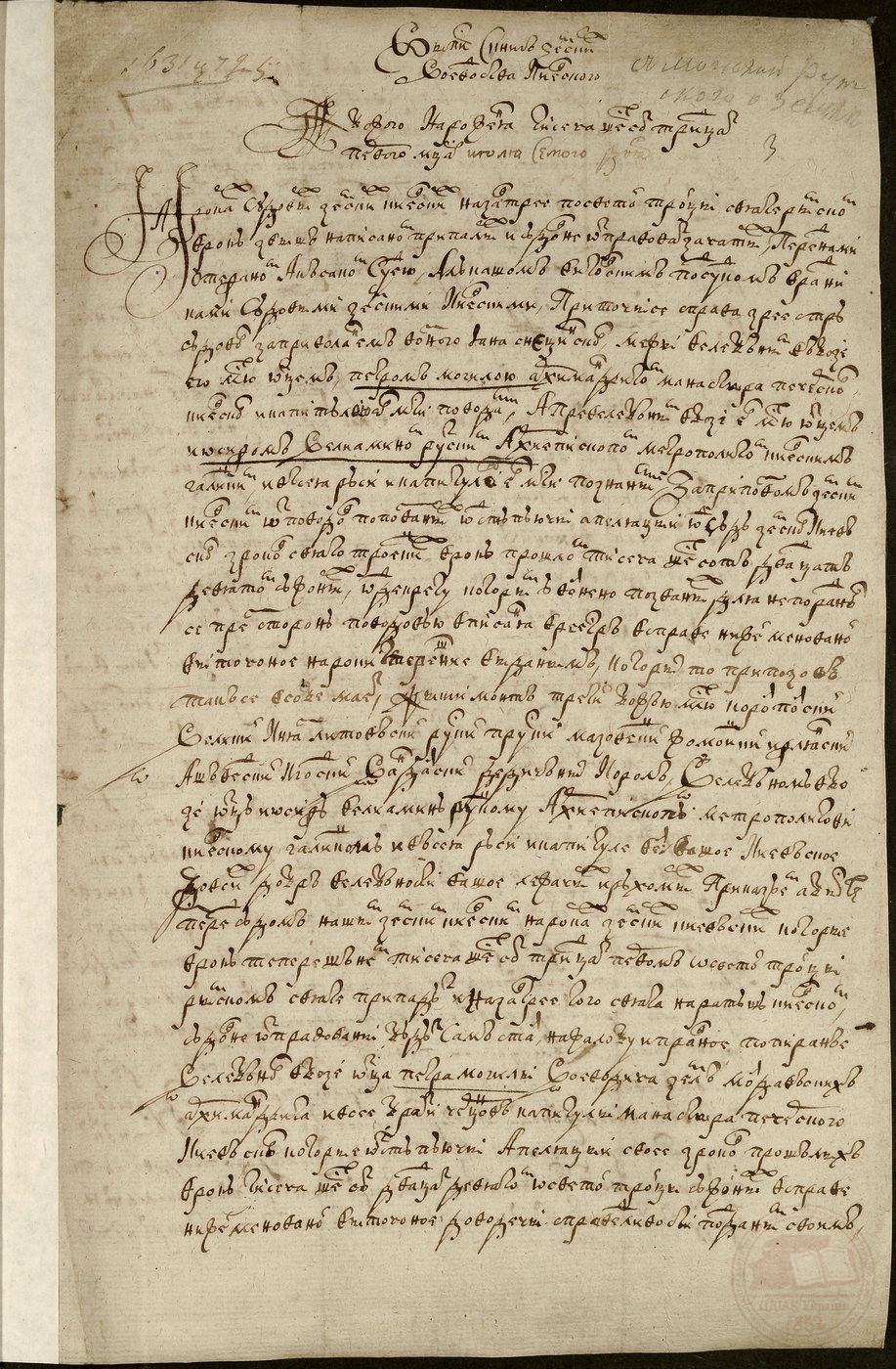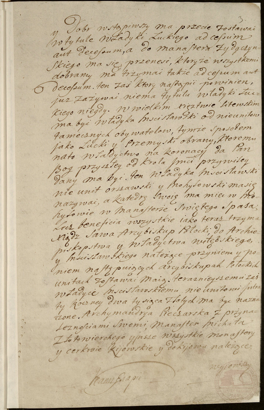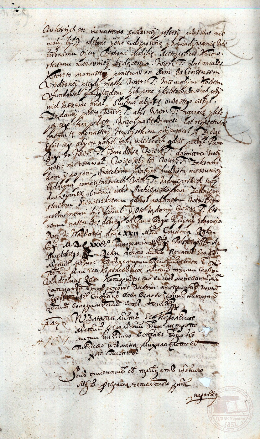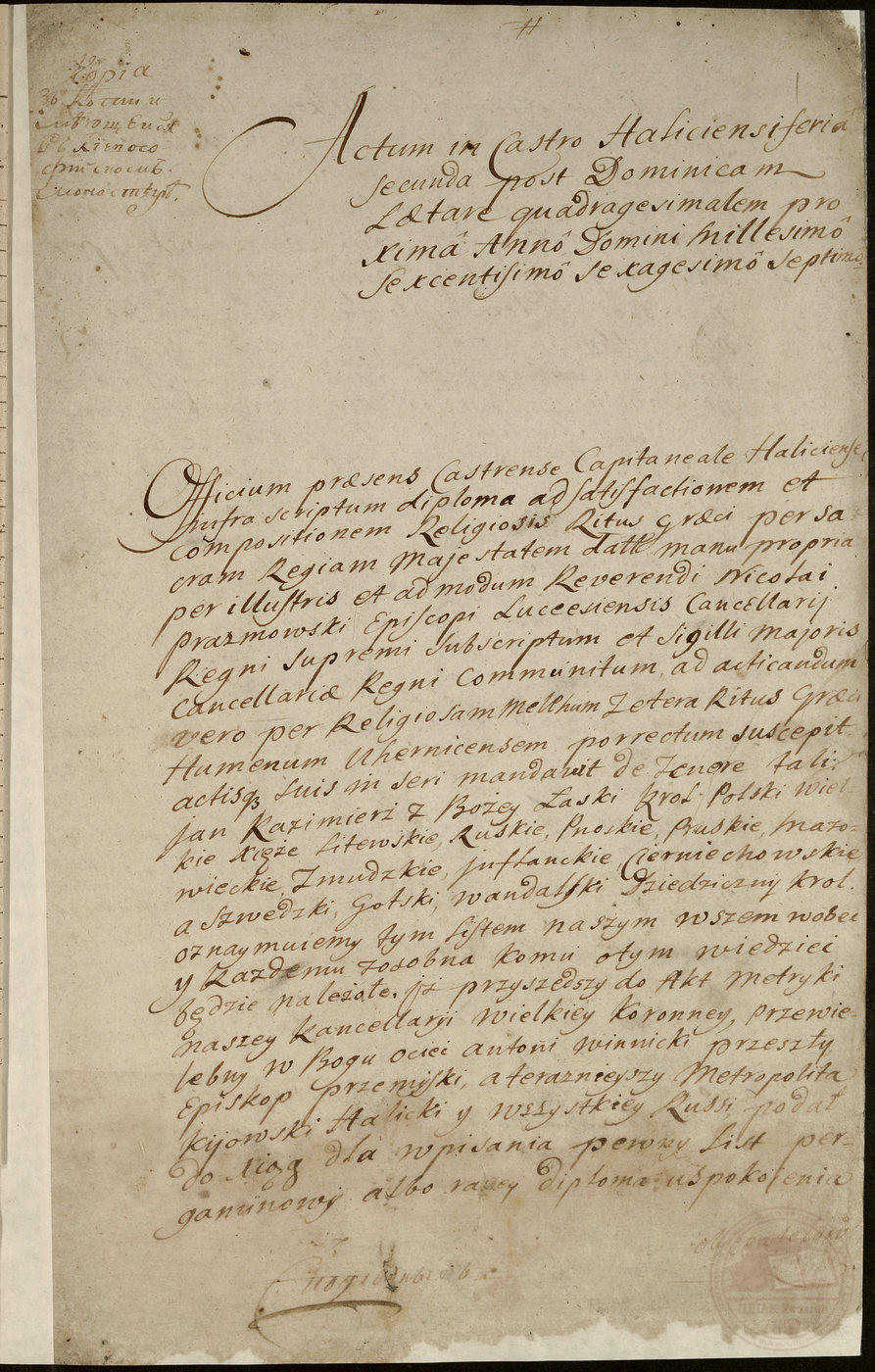 ЦДІАК України, ф. 182, оп. 2, спр. 75, арк. 1 і зв. Копія XVIIІ ст.