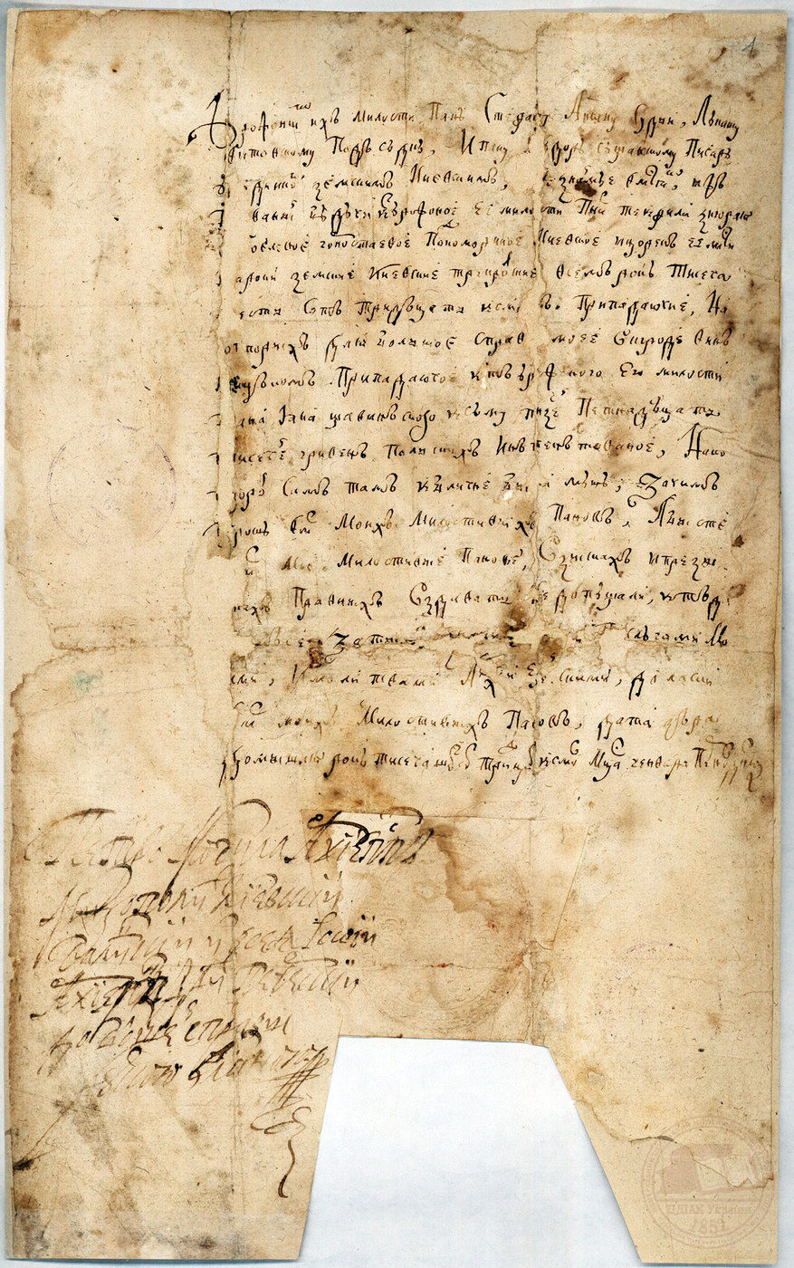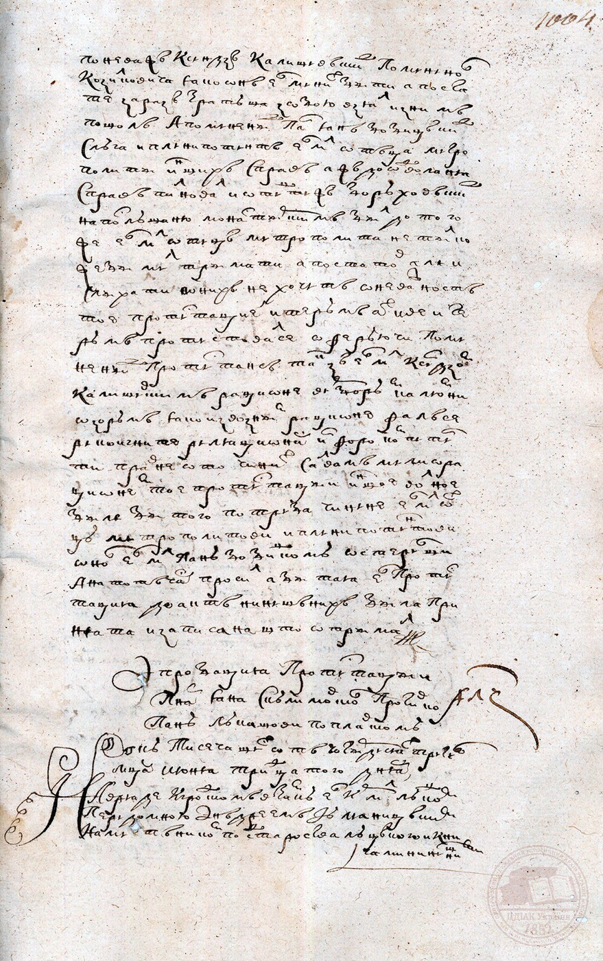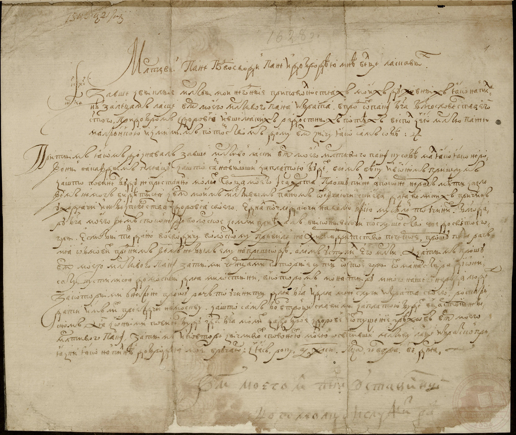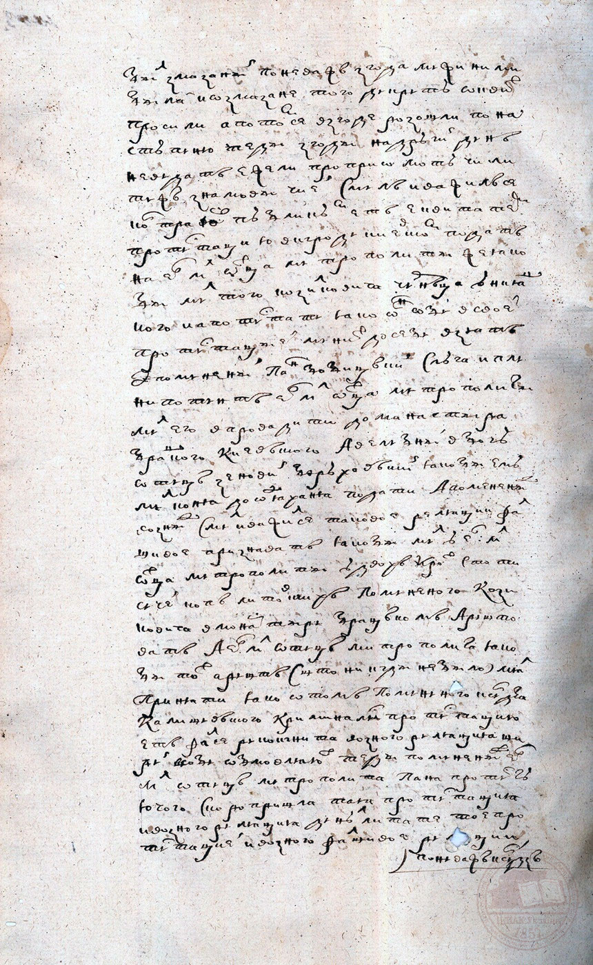 ЦДІАК України, ф. 222, оп. 1, спр. 175-а, арк. 1. Оригінал. Печатка і автограф Петра Могили.