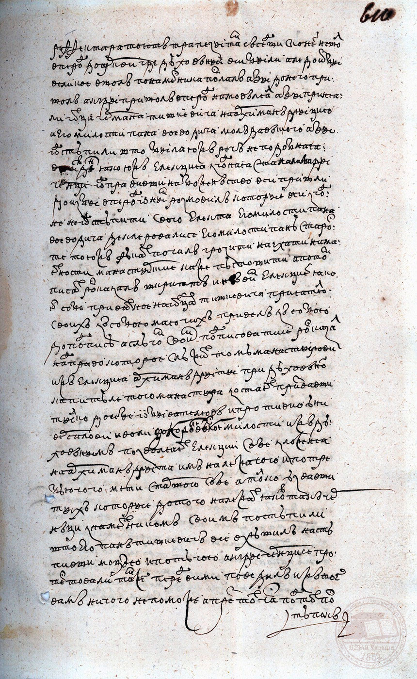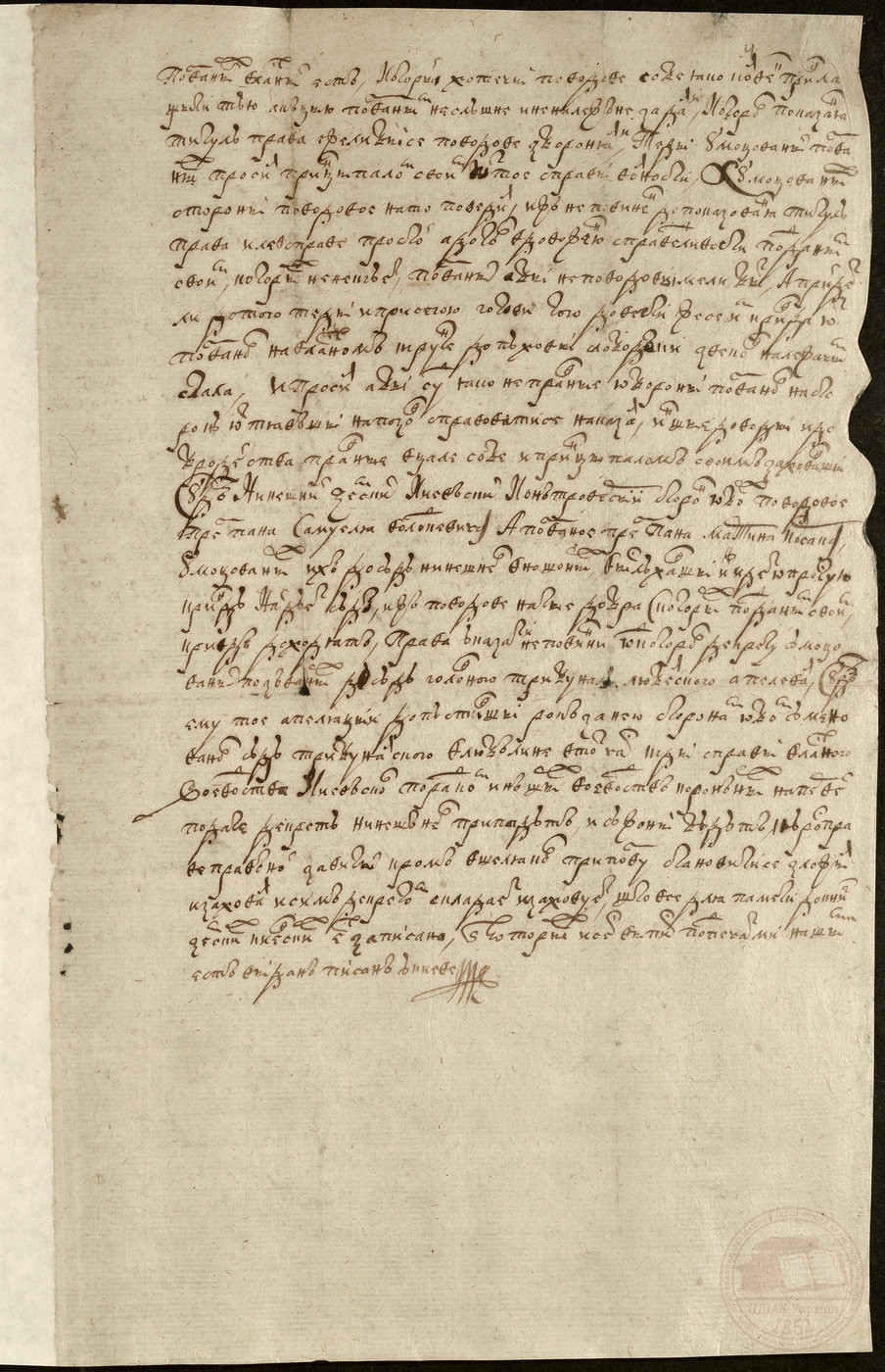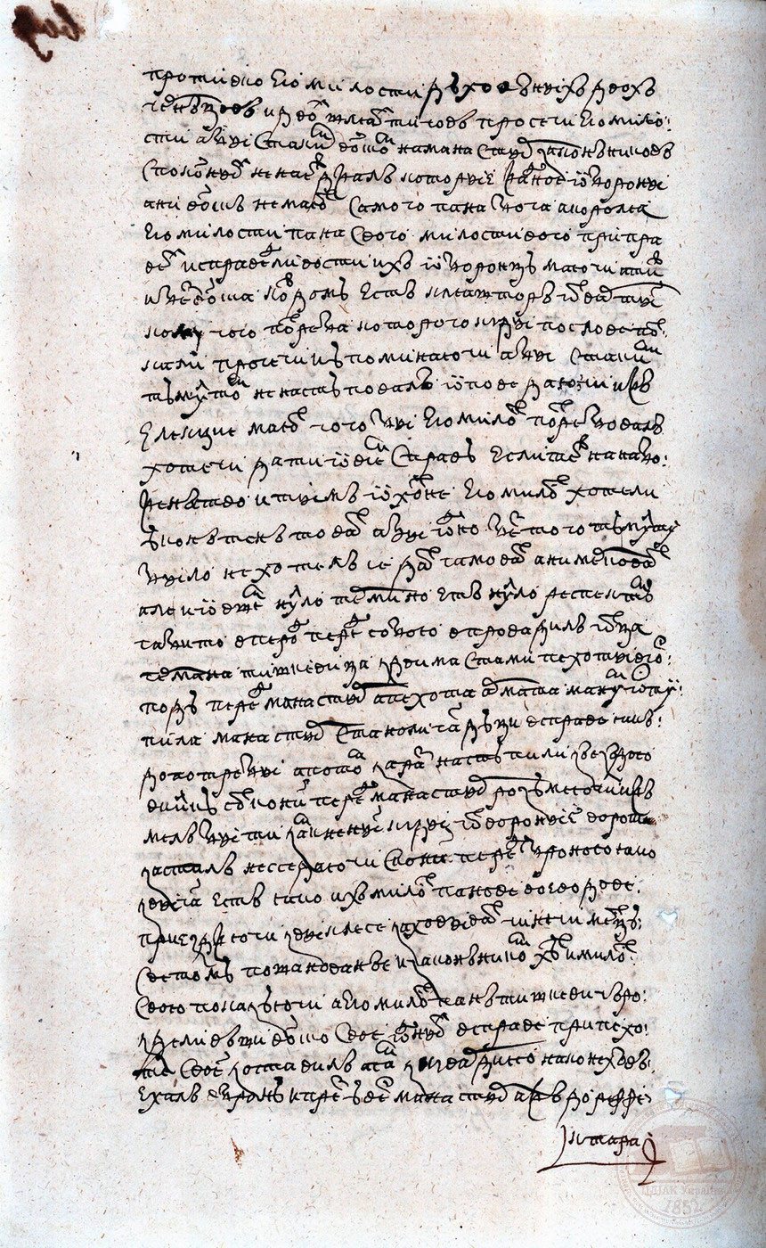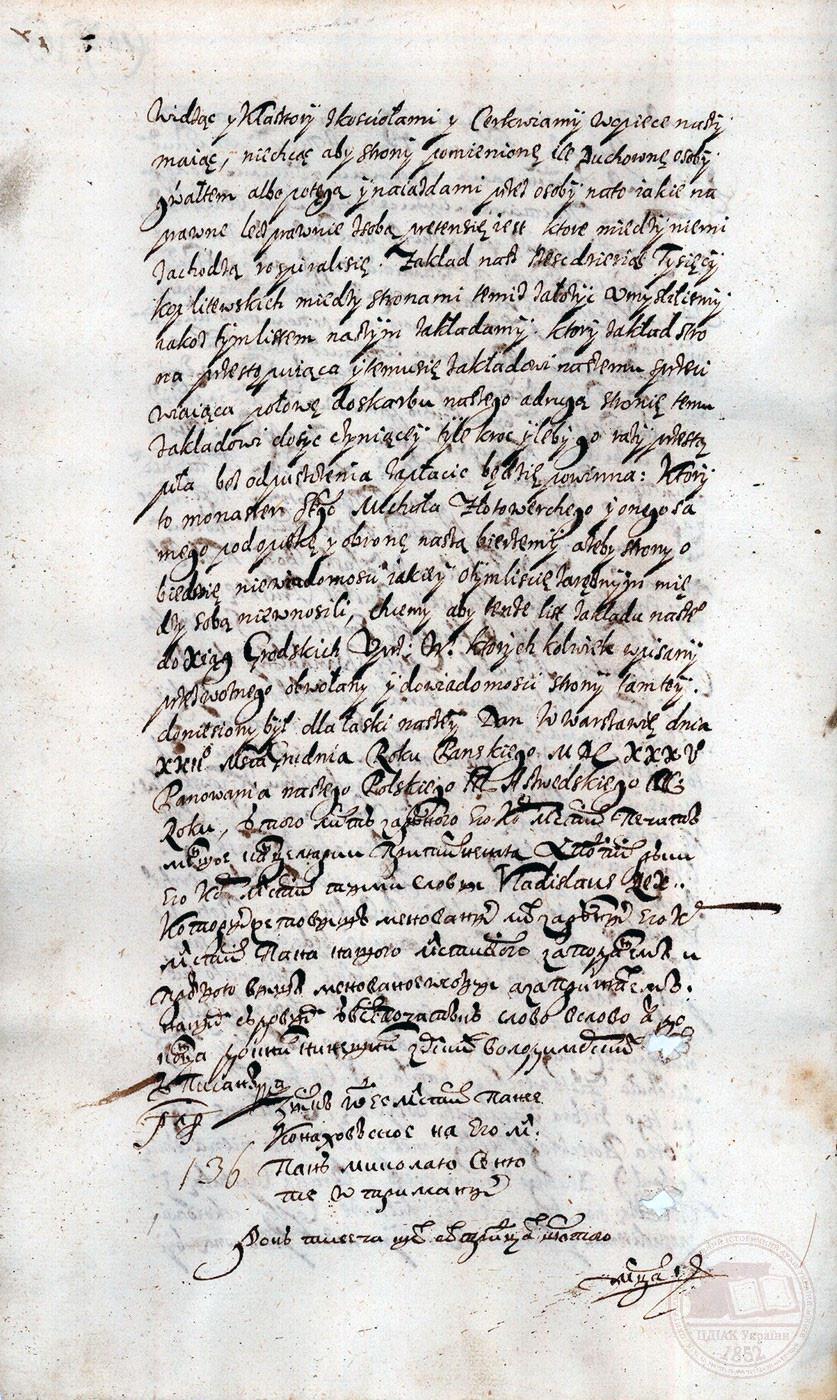 ЦДІАК України, ф. 222, оп. 1, спр. 175-а, арк. 1. Оригінал. Печатка і автограф Петра Могили.