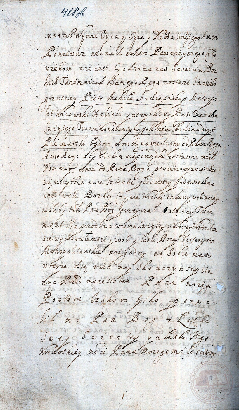 1646 р, грудня 22. – Тестамент київського митрополита Петра Могили.