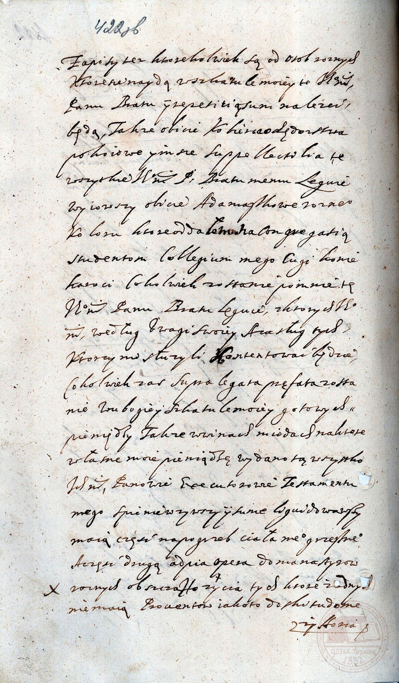 1642 р., грудня 23. – Дарчий запис київського митрополита Петра Могили генеральному каштелянові Чернігівського воєводства Адаму Киселю