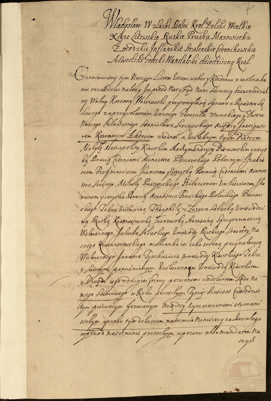 1635 р., грудня 22. – Листи короля Владислава IV до київського митрополита Петра Могили та до київського воєводи Яна Тишкевича