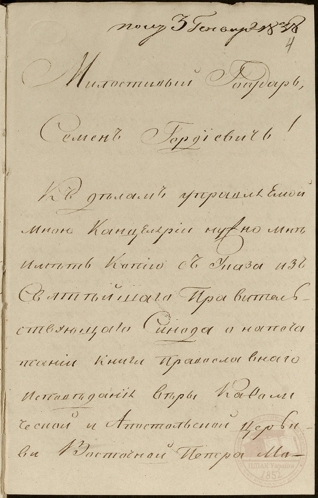 ЦДІАК України, ф. 182, оп. 2, спр. 82, арк. 1–4.