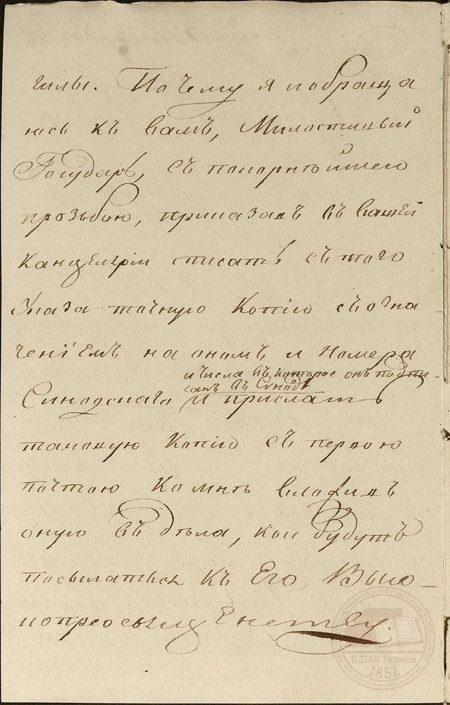 ЦДІАК України, ф. 182, оп. 2, спр. 74, арк. 1 і зв. Оригінал.