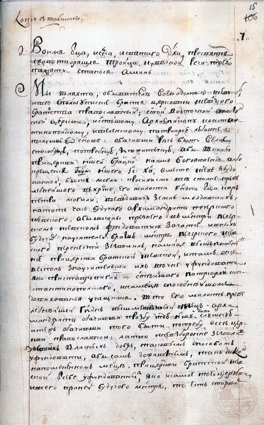 ЦДІАК України, ф. 1407, оп. 3, спр. 131, арк. 1 і зв. Копія XVIII ст.