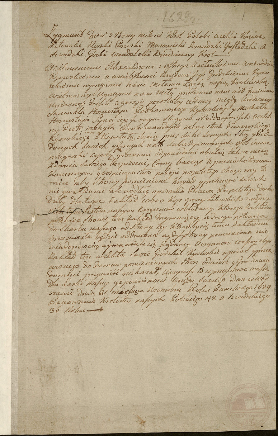 1629 р., листопада 21. – Лист короля Сиґізмунда ІІІ київському воєводі кн. Олександру Заславському