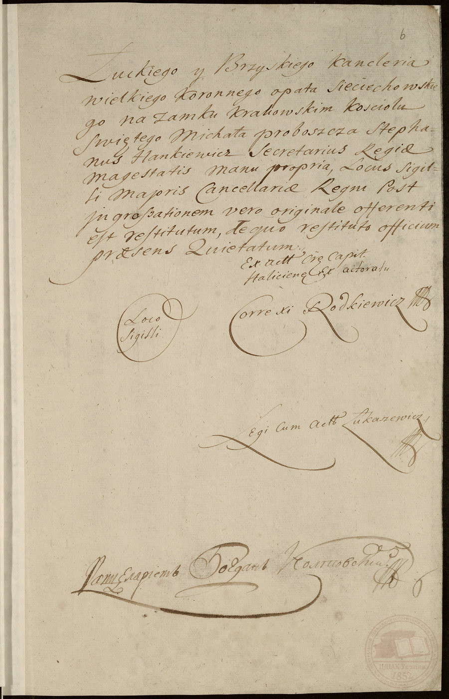 ЦДІАК України, ф. 168, оп. 2, спр. 6, арк. 13 і зв. Копія XVIIІ ст.