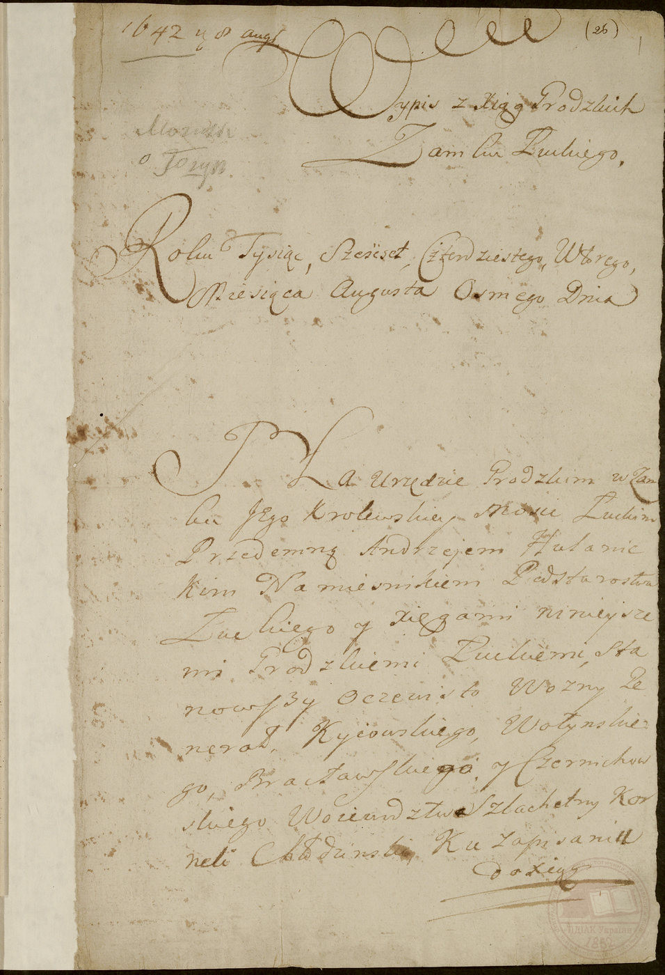 1642 р., серпня 8. – Свідчення генерального возного Волинського воєводства Корнелія Хлодзінського до Луцького ґродського суду