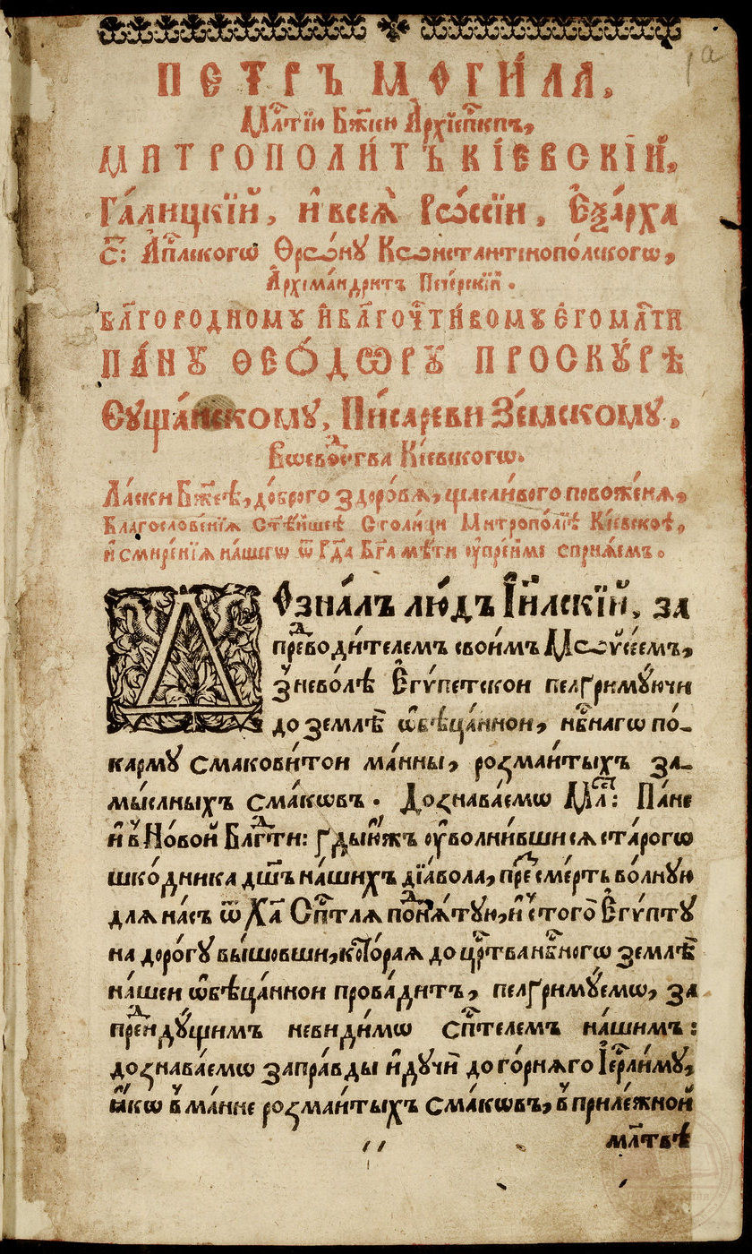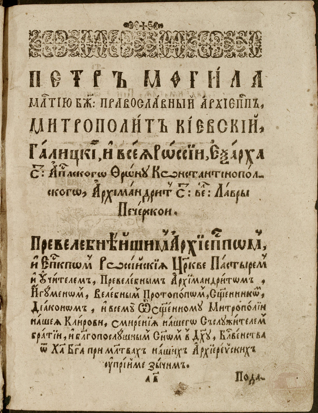 “Євангєліє сиріч благовістіє ... євангєлістів. Благословінням святих патріархів і превелебного кір[ика] Петра Могили,