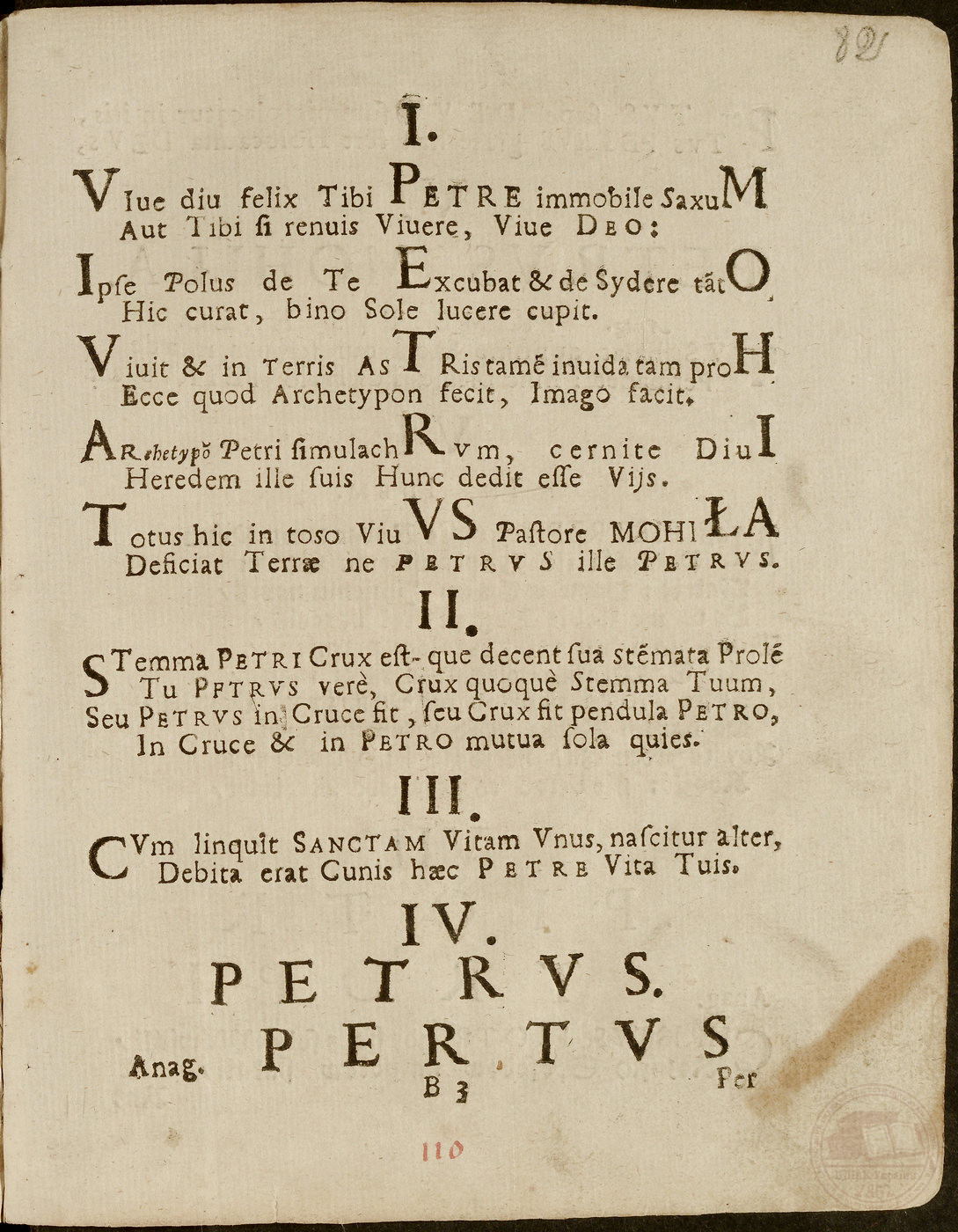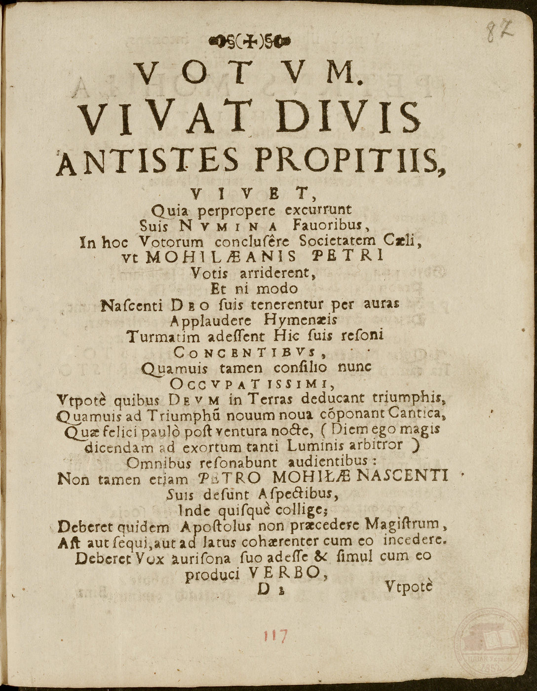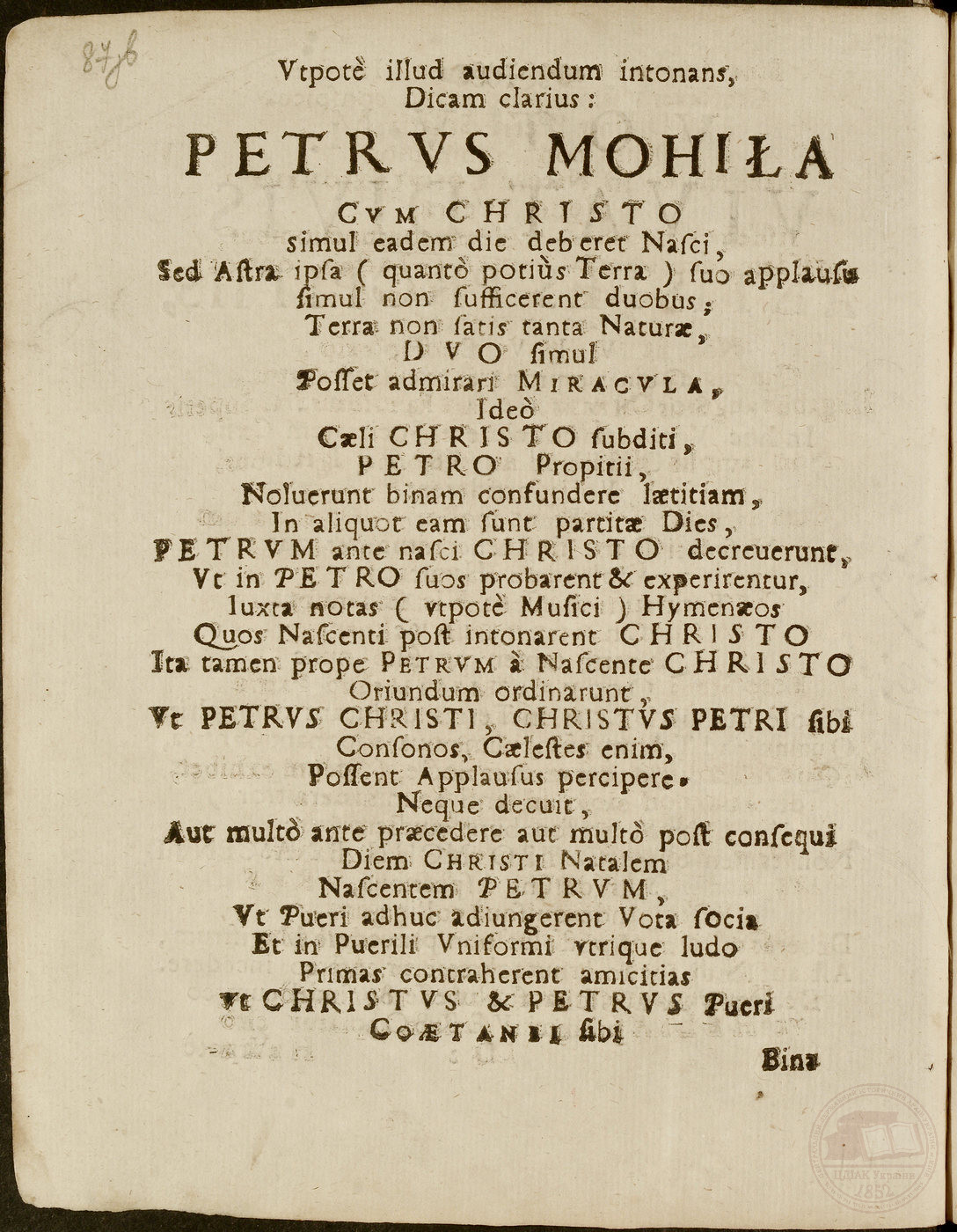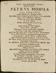 Баєвський Феодосій. Панегірик Петру Могилі “Sancti Petri metropolitae Kijoviensis thaumaturgi Rossiae... Petrus Mohila patroni sui iconismus” (у конволюті), 1645 р.