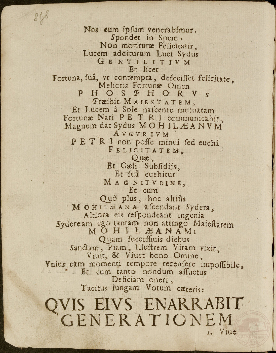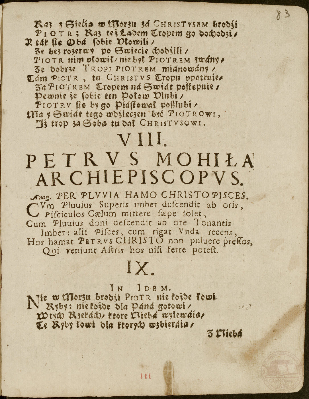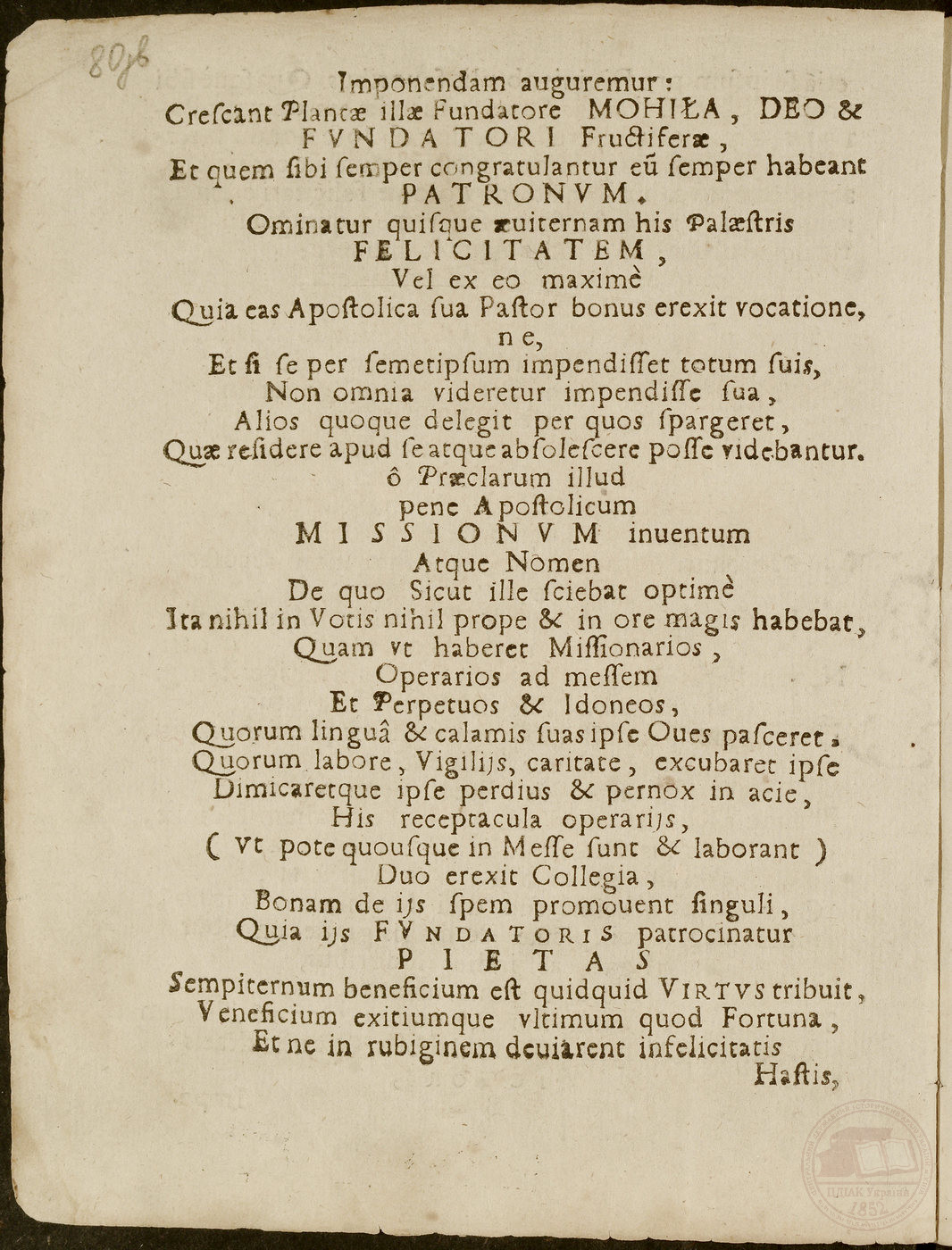 Баєвський Феодосій. Панегірик Петру Могилі “Sancti Petri metropolitae Kijoviensis thaumaturgi Rossiae... Petrus Mohila patroni sui iconismus” (у конволюті), 1645 р.