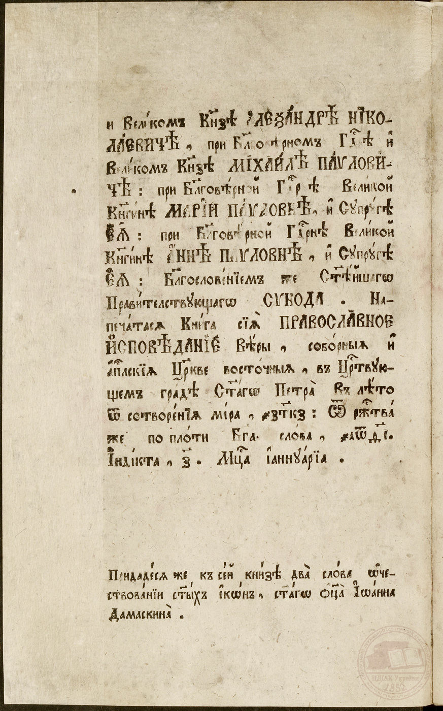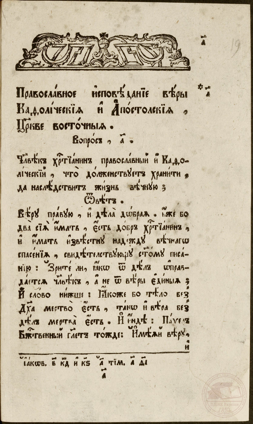 Могила Петро. “Православноє исповѣданіє вєры...” – Спб., [друкарня Синоду], 1819 р.