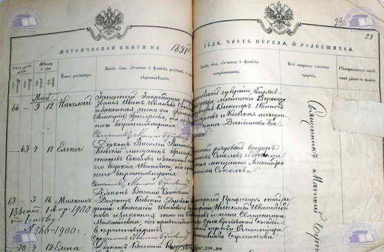 Під № 9 від 26 квітня – запис про вступ у шлюб Михайла Афанасійовича Булгакова з Лаппа Тетяною Миколаївною.